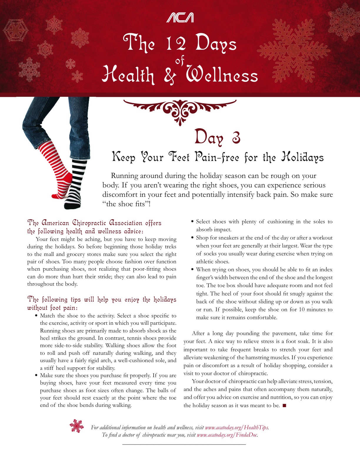 Join us as we count down the days until Christmas with the American Chiropractic Association’s “12 Days of Health and Wellness.”