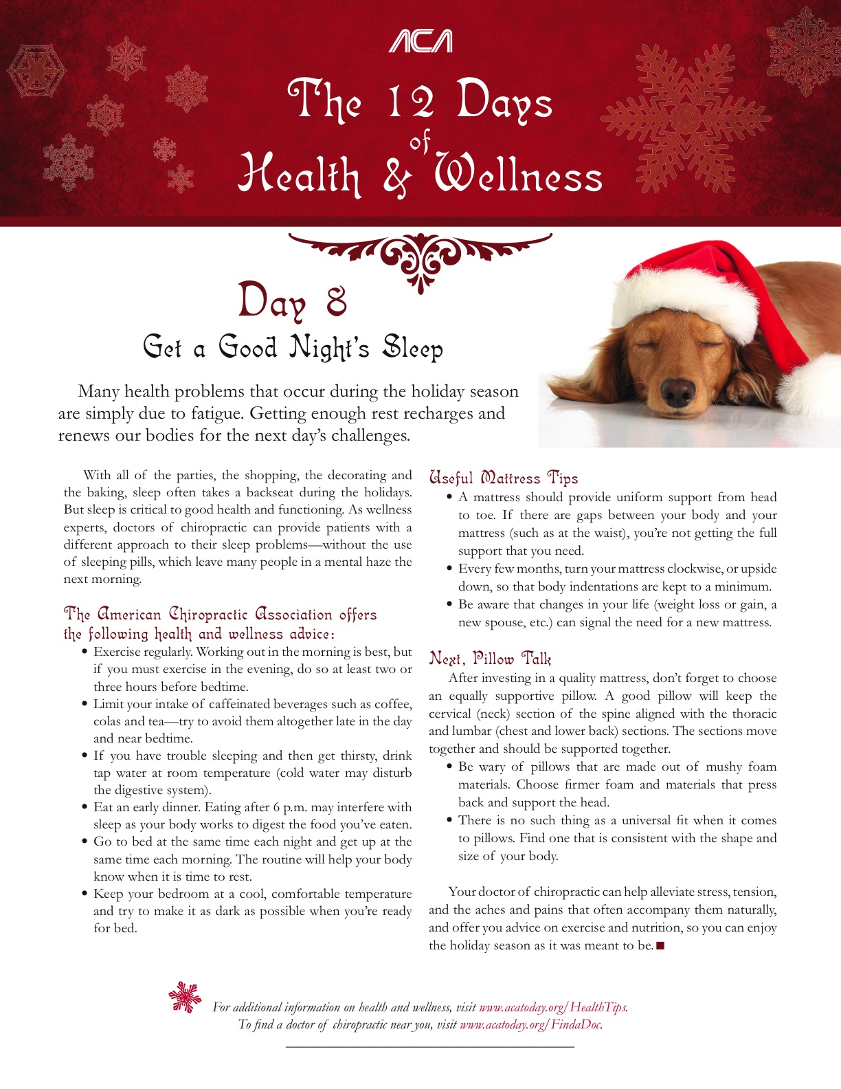 Join us as we count down the days until Christmas with the American Chiropractic Association’s “12 Days of Health and Wellness.”