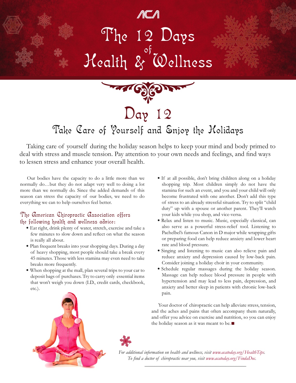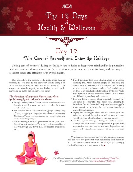 Join us as we count down the days until Christmas with the American Chiropractic Association’s “12 Days of Health and Wellness.”